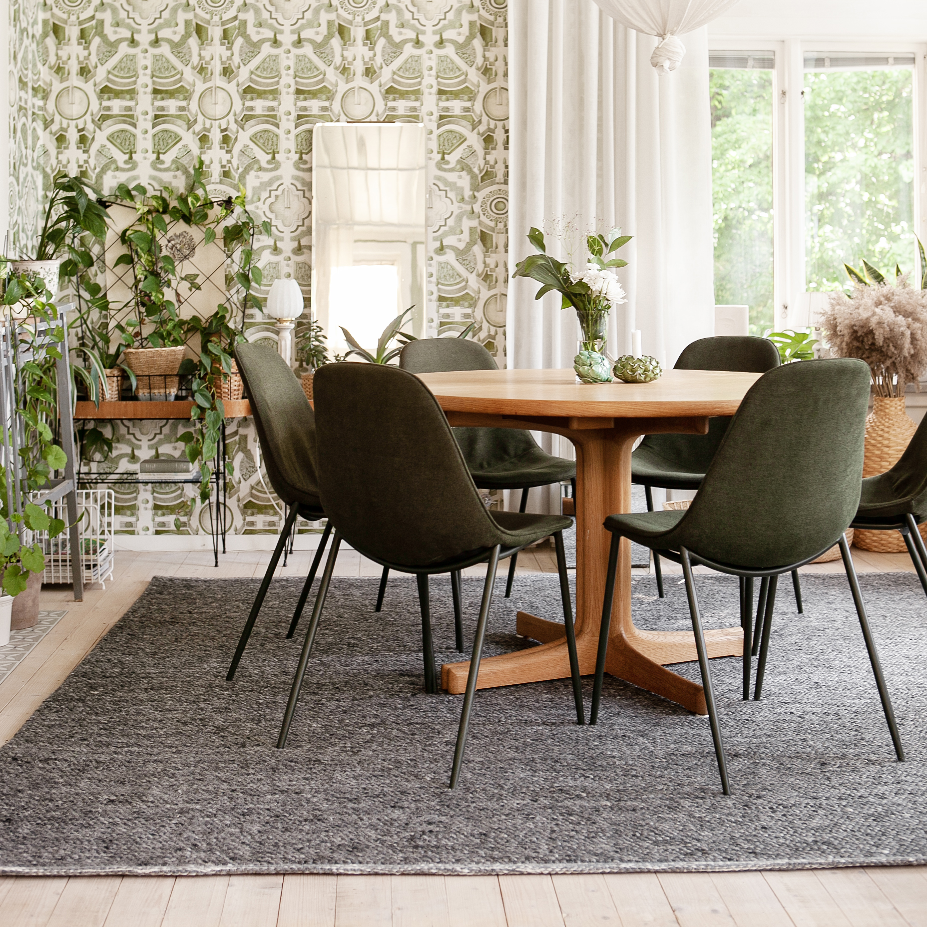 Indimellem støder man på et rum, hvor et kvadratisk tæppe ville være helt perfekt. Det kan eksempelvis være i en kvadratisk entré eller ved en chaiselongsofa, som står placeret op ad væggen. Når det kommer til netop chaiselongsofaer, føler mange, at et kvadratisk tæppe er lige det, de behøver, for på bedste vis at udfylde det tomrum der opstår i vinklen mellem sofaens to dele. Den bedste løsning i sådan en situation ville dog egentlig være at vælge et større, rektangulært tæppe, som sofaen kunne stå helt eller delvist på. Du kan naturligvis også finde alternativer, hvis du ikke ønsker et større rektangulært tæppe, hvor du kan placere sofaen enten helt eller delvist.