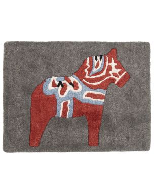 Dalahäst er en håndtuftet dørmåtte fra svenske Axeco. Måtten er fremstillet i uld og er velegnet til indendørs brug. Her er Dalahäst i farven sort.