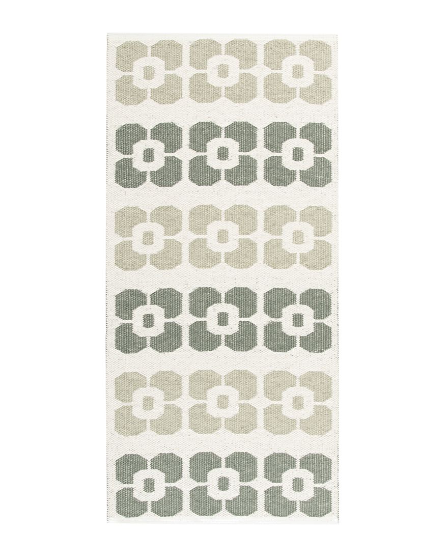 Florian er et svenskfremstillet plasttæppe fra Horredsmattan. Tæppet er designet af Ulla Gustavsson og har et lækkert design med et blomsteret mønster. Plasttæpper er tidløse, og med den smukke Florian vil dit hjem få en livlig følelse i mange år. Her er Florian i farven grøn.