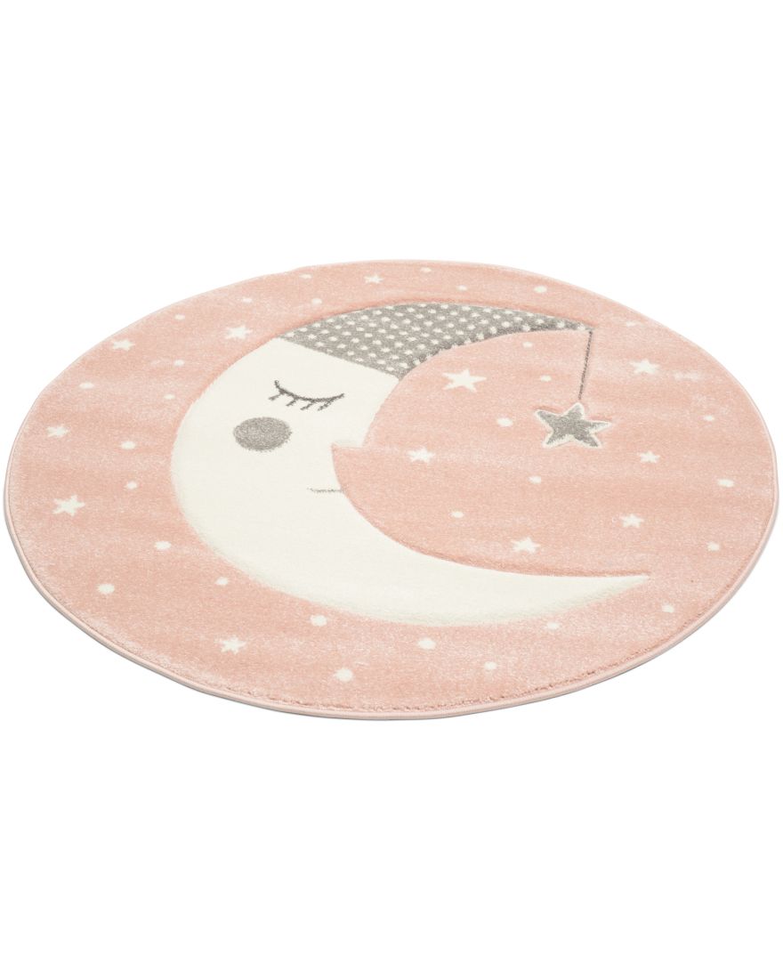 Indigo John Blund er et rundt, maskinvævet børnetæppe med motiver af en sød, sovende måne med en nathue på. En flot detalje i børneværelset! Tæppet har en skåret luv, som gør det blødt og behageligt at sætte fødderne på. Tæppet er lavet med en carvingteknik, som gør tæppets detaljer mere fremtrædende. Her ser du Indigo John Blund i farven rosa.