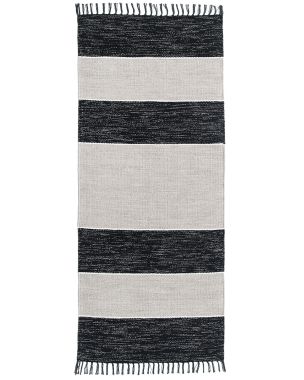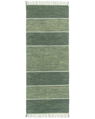 Kludetæppet Mette er vævet med klassiske striber og naturlige farver, der går tone-i-tone. Det har flotte dekorative frynser på de korte sider. Tæppet Mette er iøjnefaldende og vil være en indretningsdetalje, der løfter hele rummet. Her ses Mette i farven blå.