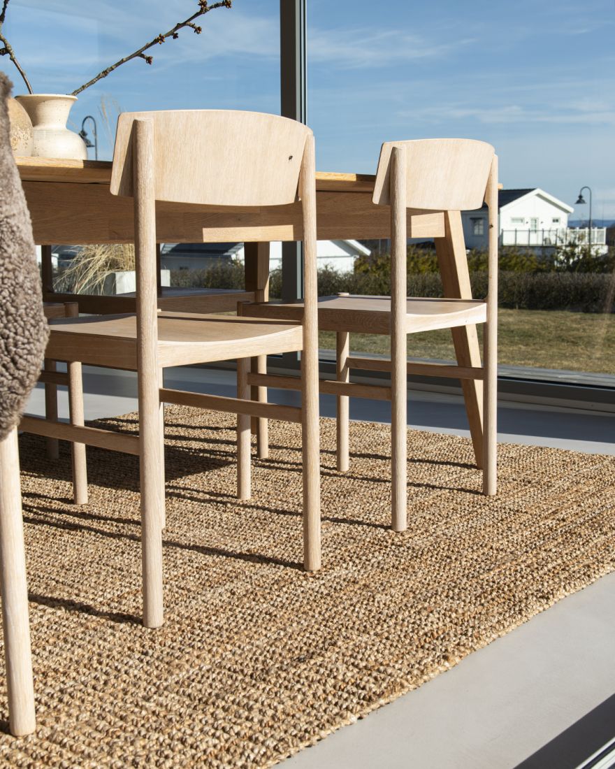 Oplev den rustikke skønhed ved Pune, et håndvævet tæppe vævet helt i naturmaterialet jute. Tæppet er tykt vævet med en tydelig struktur, hvilket giver en kraftfuld men jordnær følelse. Jute er et naturligt slidstærkt materiale med stærke fibre, der godt modstår hverdagens slid og bevarer sit smukke udseende over tid. Tæppets slidstærke og fornybare materiale gør Pune til et bæredygtigt valg for både dit hjem og vores planet. Velkommen naturens charme ind i dit hjem med Pune, hvor stil og funktion mødes.