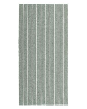 Rand er et plasttæppe fra svenske Horredsmattan. Tæppet er ensfarvet i bunden med smalle hvide lodrette striber. Tæppet er vendbart og kan derfor ligge med begge sider opad. Her ses Rand i farven rosin.