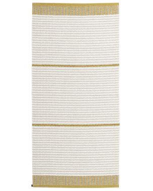 Rosa er et plasttæppe fra svenske Horredsmattan, hvis produkter står for høj kvalitet og en lang levetid. Tæppet er vævet i et stribet mønster, hvor en karakteristisk farvet linje regelmæssigt bryder som en kontrast. Samme farve afslutter elegant de korte sider. Plasttæpper er praktiske og passer i såvel køkkenet som i vaskerummet. Her ses Rosa i farven sort.