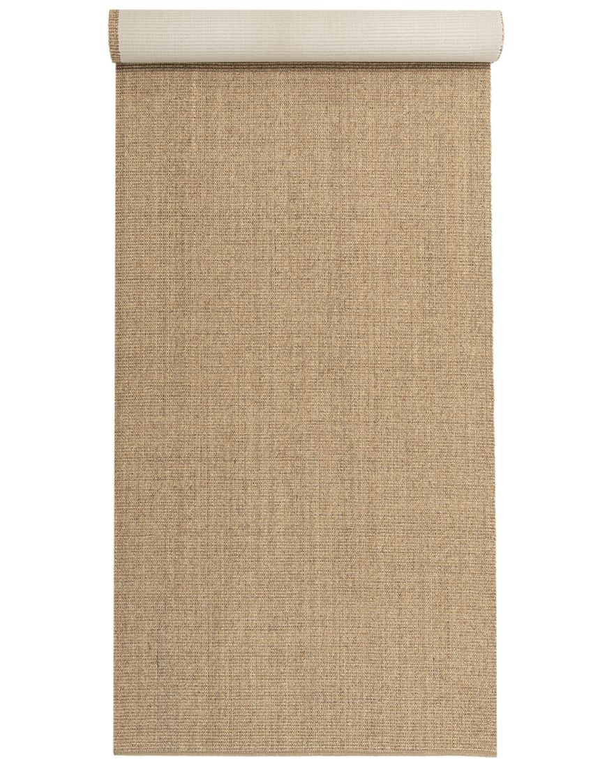 Det her er en tæppeløber i metervare i naturmaterialet sisal med gummieret underside hvilket gør at den ligger fast på gulvet. Den er ensfarvet og gør et stilrent og smagfuldt indtryk, og den er enkel at kombinere med andet interiør. At den findes i metervare betyder, at du kan få dit tæppe i præcis den længde, du ønsker. Her ser du tæppet i farven biscuit.