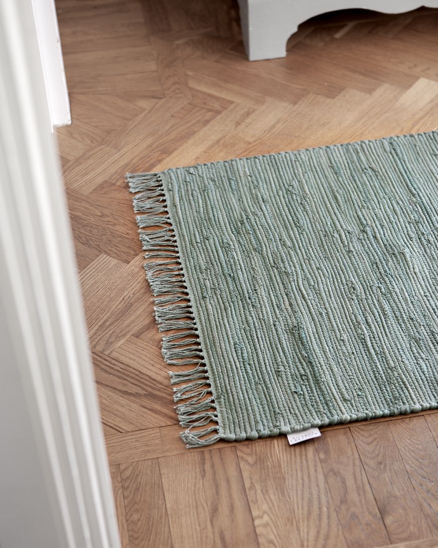 Vi elsker alle slags tæpper - og især kludetæppet. Det har haft en plads i mange hjem gennem flere generationer. Kludetæppet Smickra fås i rolige, jordnære farver Tæppet er slidstærkt, rengøringsvenligt, flot og behageligt at gå på. Med tæppet Smickra får du ikke kun et holdbart tæppe, men også en flot indretningsdetalje, der passer ind i ethvert hjem. Her ses Smickra i farven grøn.