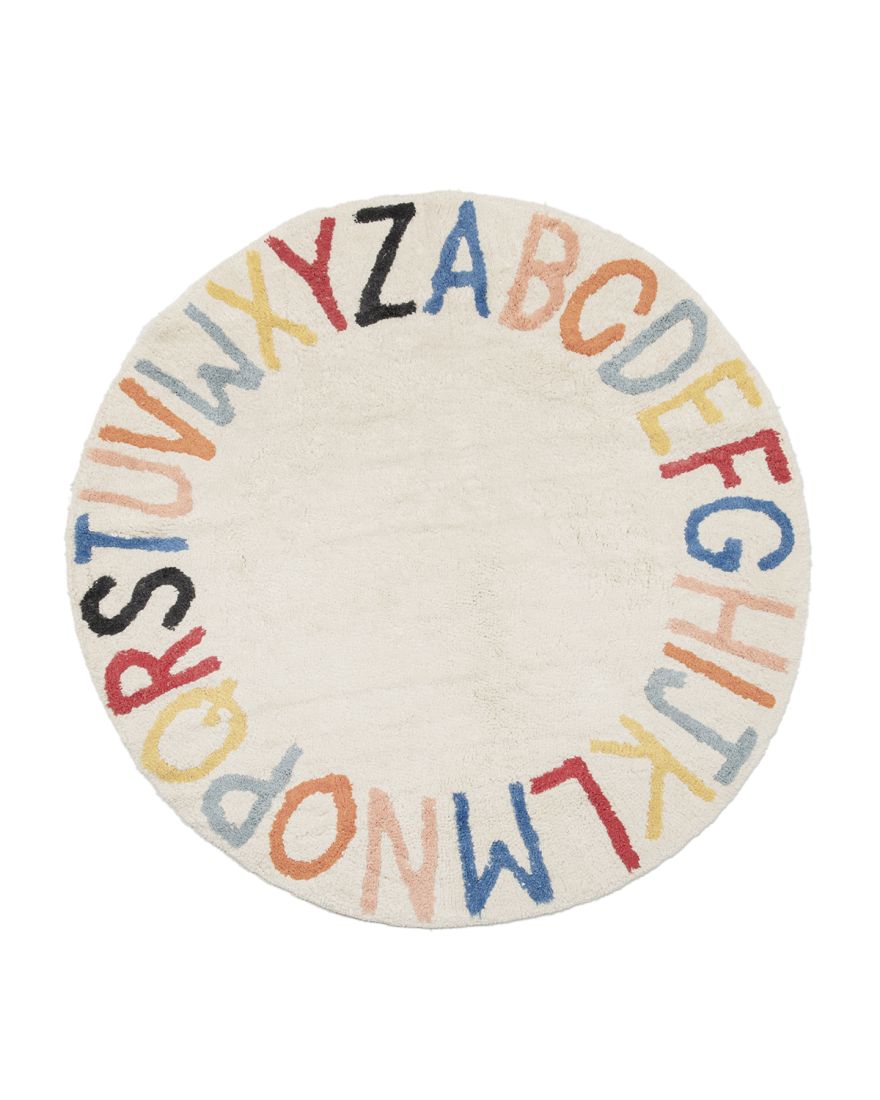 Stava er et rundt børnetæppe, håndvævet af blød bomuld, hvor leg og læring kombineres på en stilfuld måde. Tæppet har et enkelt men sejt design, hvor et alfabet i lyse, farverige nuancer flot indrammer tæppet og dets lyse beige bund. Opdag bogstaver og lær alfabetet, samtidig med at tæppet giver en blød og behagelig overflade at sidde på. Stava er desuden vaskbar, for at være et holdbart tæppe, der tåler meget leg og sjov. Her ser du Stava i farven soft multi.