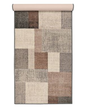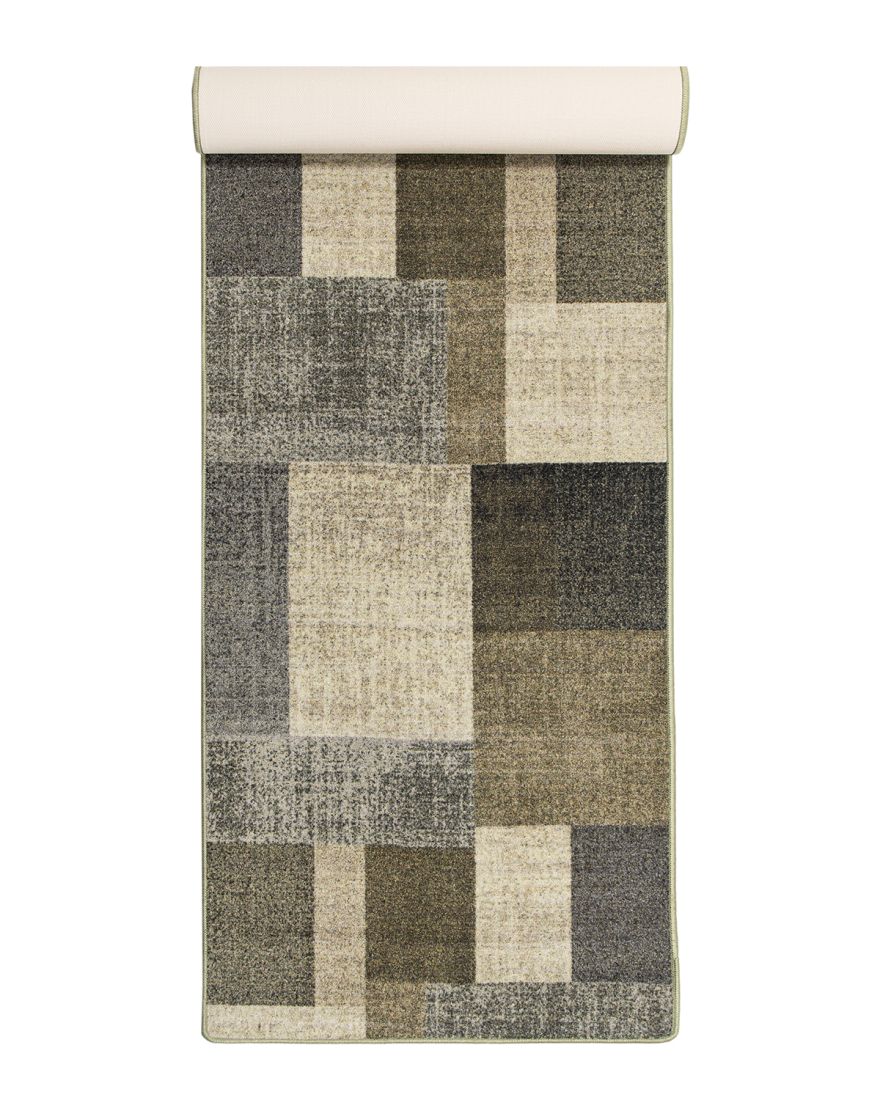 Tasman er et tæppeløber i metervare med en kort løkkevævet luv. Undersiden er gummieret og hjælper måtten med at ligge fast på gulvet. Mønsteret består af firkanter, der både varierer i størrelse og farve. Tæppet er nemt at pleje - det kan både støvsuges og rengøres. Her ses Tasman i farven grøn.