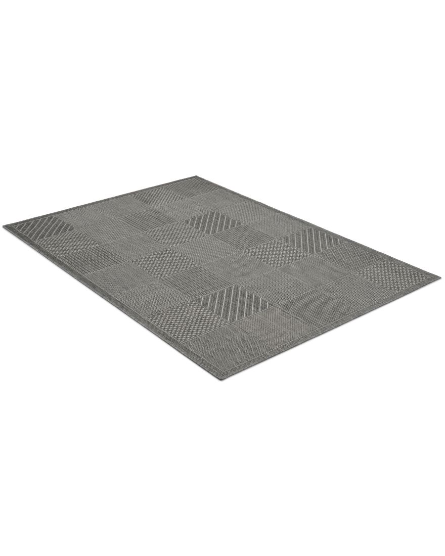 Taverna er et fladvævet tæppe med latexbagside. Latexbagsiden gør, at tæppet ligger stabilt på gulvet. Mønsteret i Taverna udgøres af firkanter med skiftende struktur, men i tætte farvenuancer. Her ser du Taverna i farven grå.
