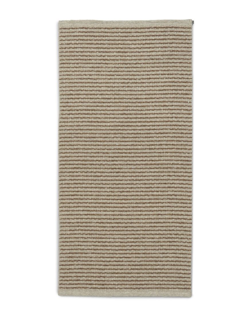 Vera er et vævet garntæppe fra svenske Horredsmattan. Vera er vævet i et stribet mønster i to matchende farvetoner. Horredsmattans produkter står for høj kvalitet og lang levetid. Her ses Vera i en lysebrun farve.
